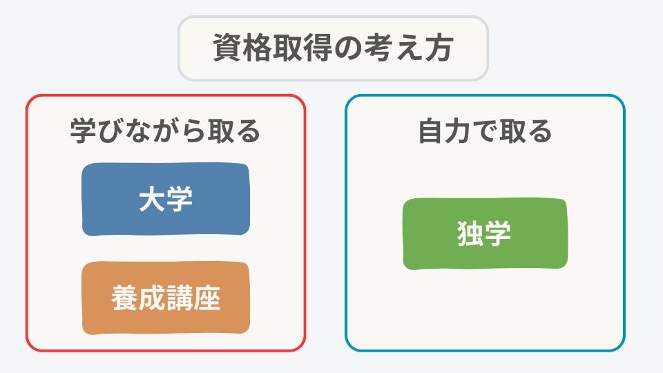 学びながら資格取得を目指すか、自分で計画立てて進めていくか。