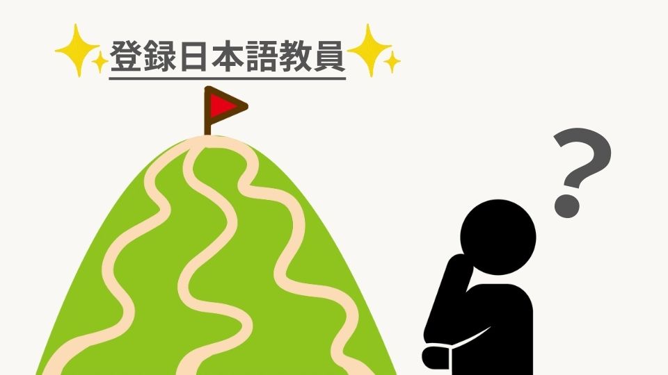 登録日本語教員の資格取得では、日本語教員試験が山の中腹にあるチェックポイントになります。